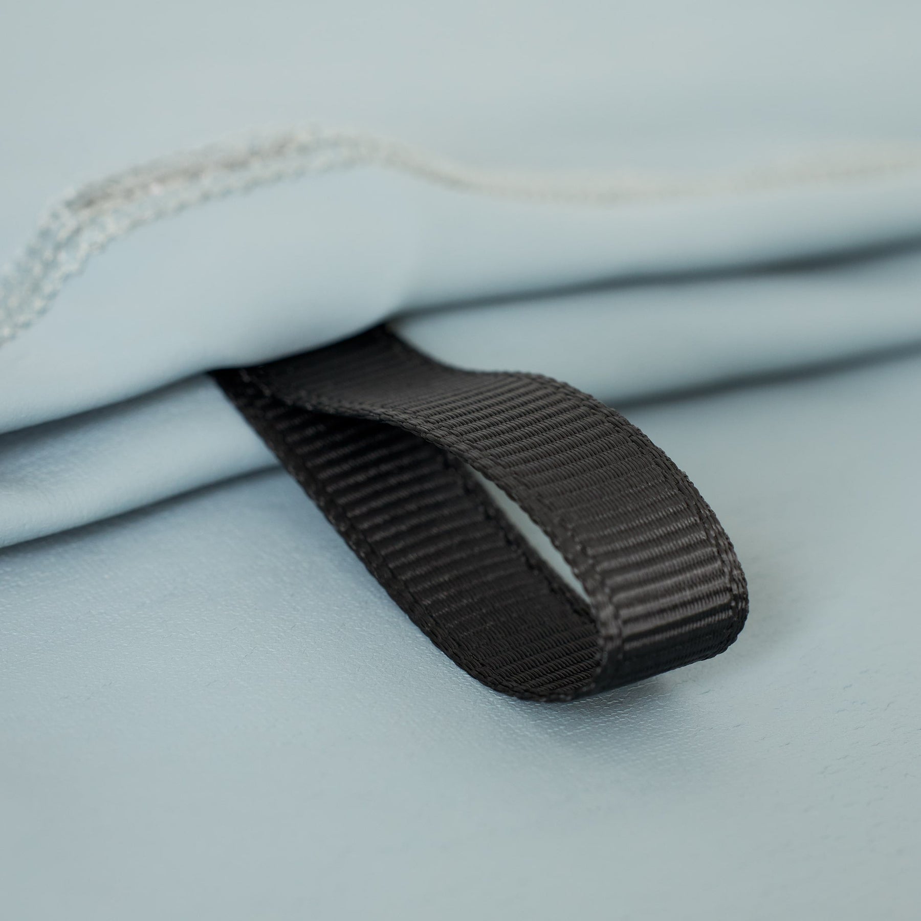 - 爪ではなく指の腹で。表面のスムースな素材を傷つけないよう、着用時は指先でやさしく引き上げてください。